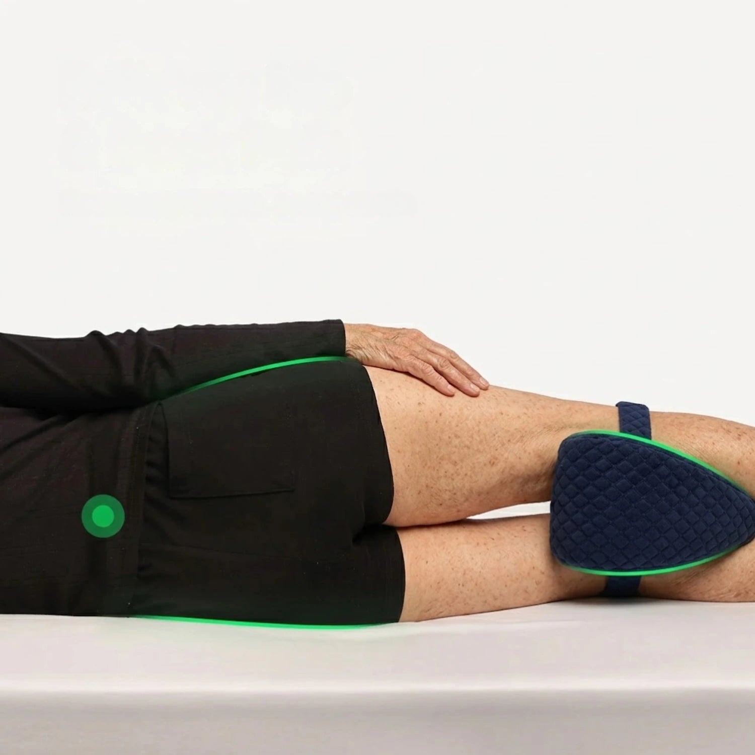 Knäkudden skapar precis rätt avstånd mellan benen för att avlasta lederna, minska friktionen och förbättra blodcirkulationen under natten. Resultatet? Färre smärtsamma uppvaknanden. Mjukare morgnar. Och en kropp som känns mer utvilad än när du lade dig.