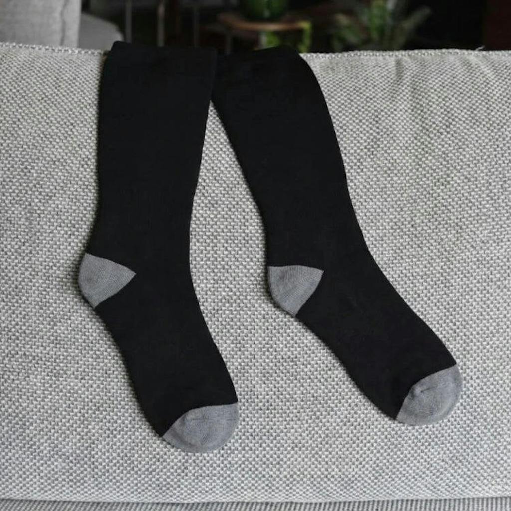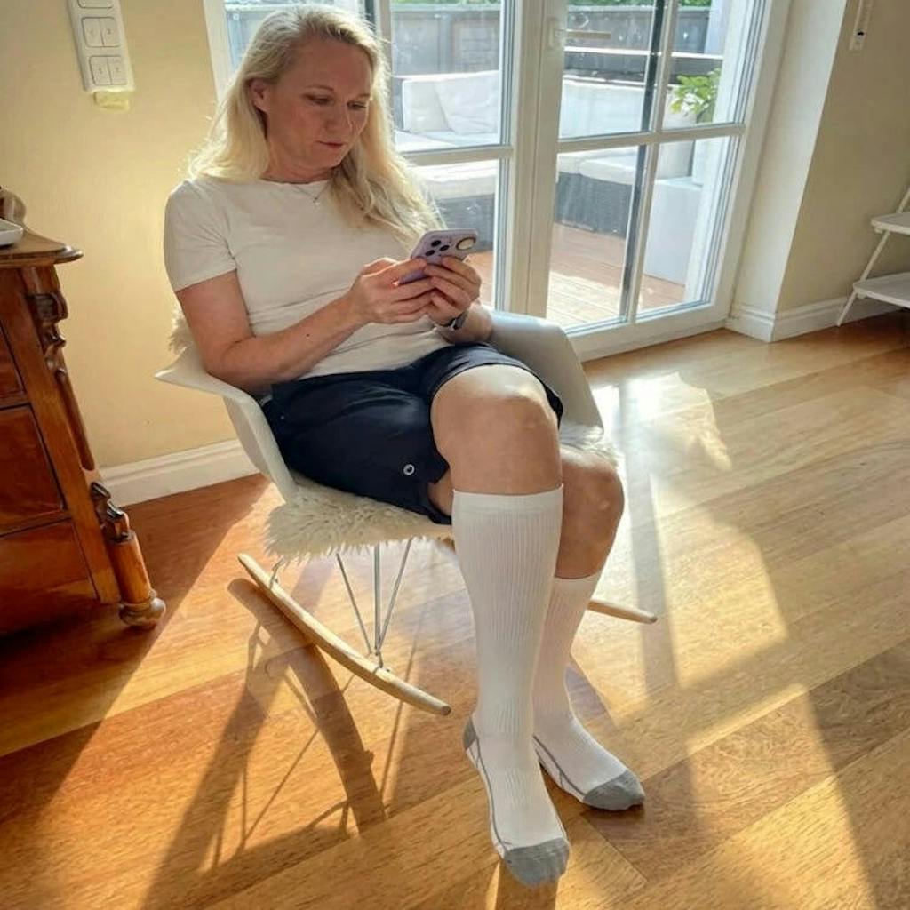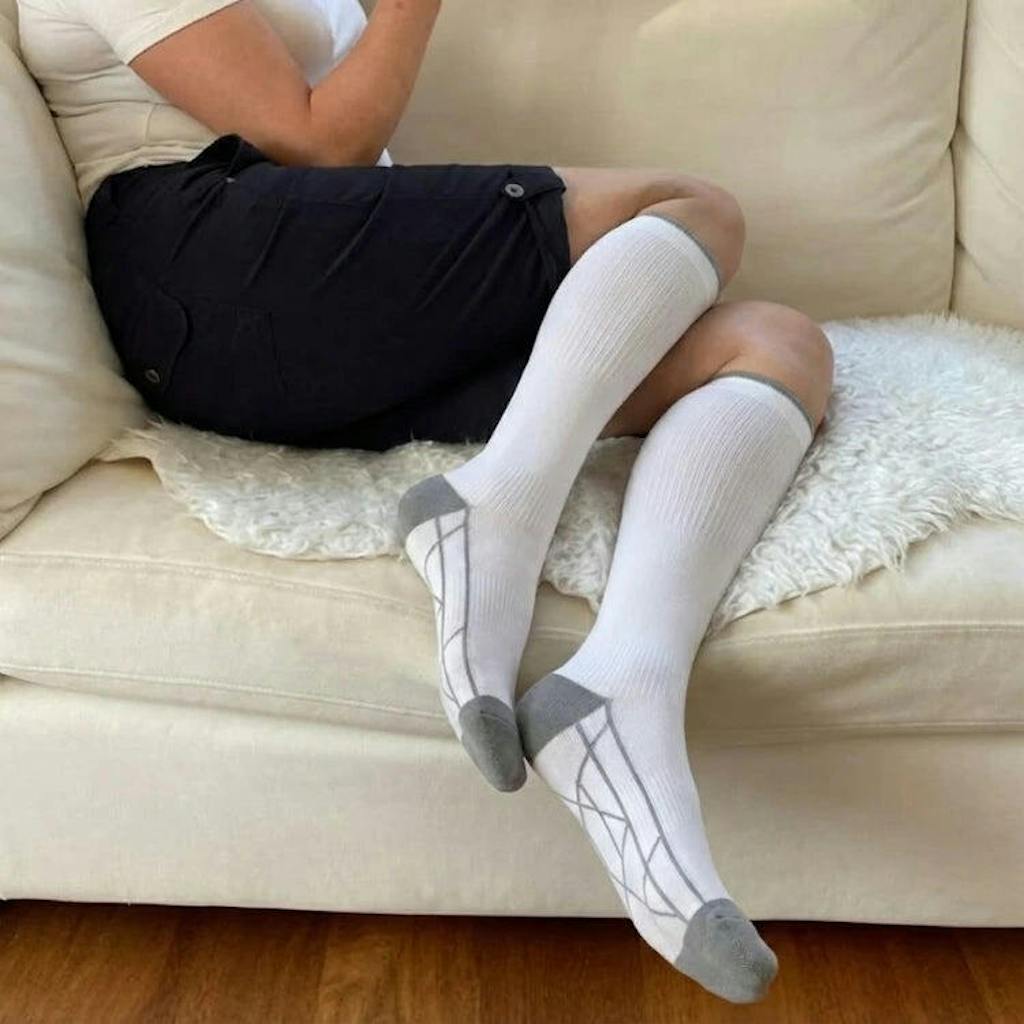 Kompressionsstrumpor ger ett gradvis tryck på dina ben, vilket hjälper till att förbättra blodflödet tillbaka till hjärtat.