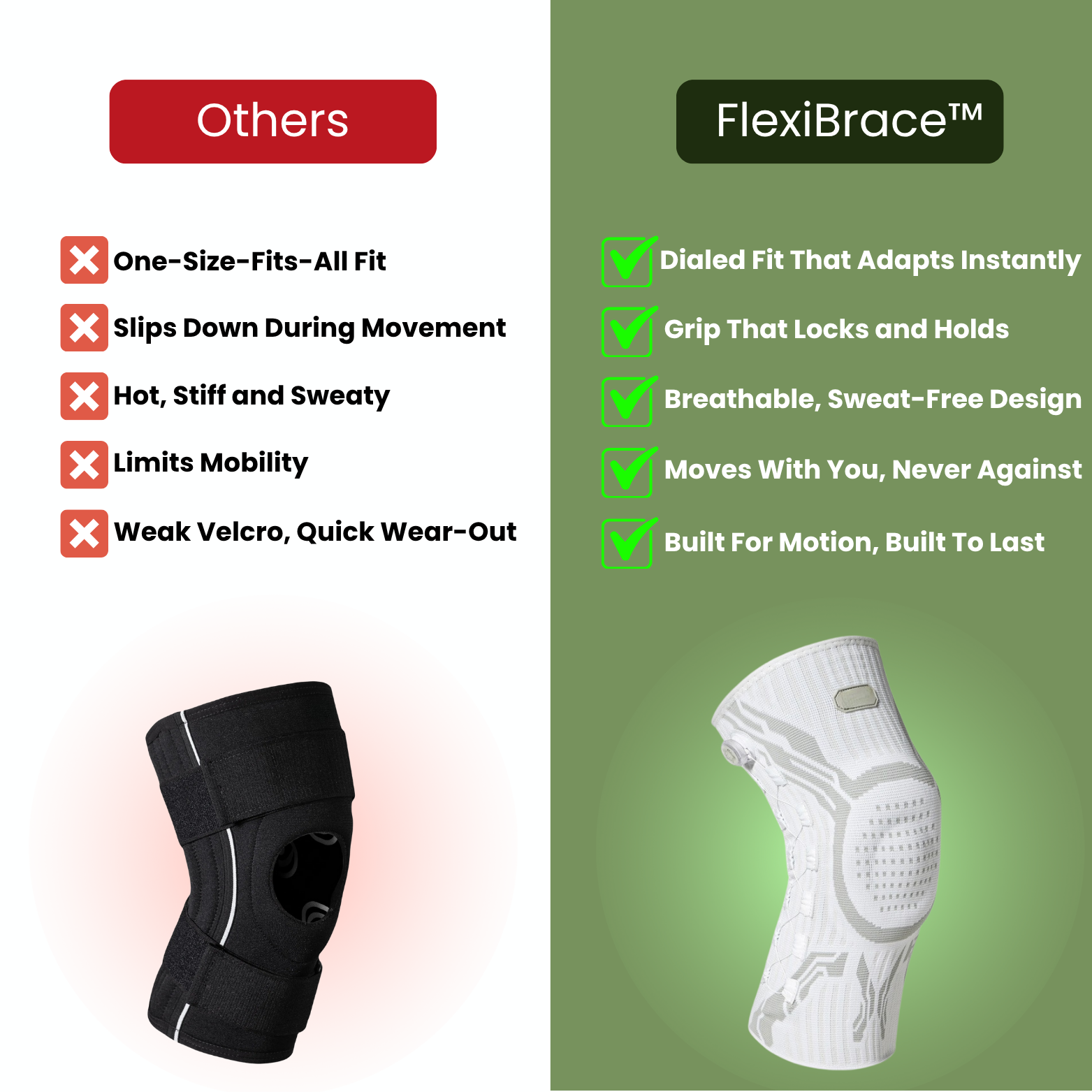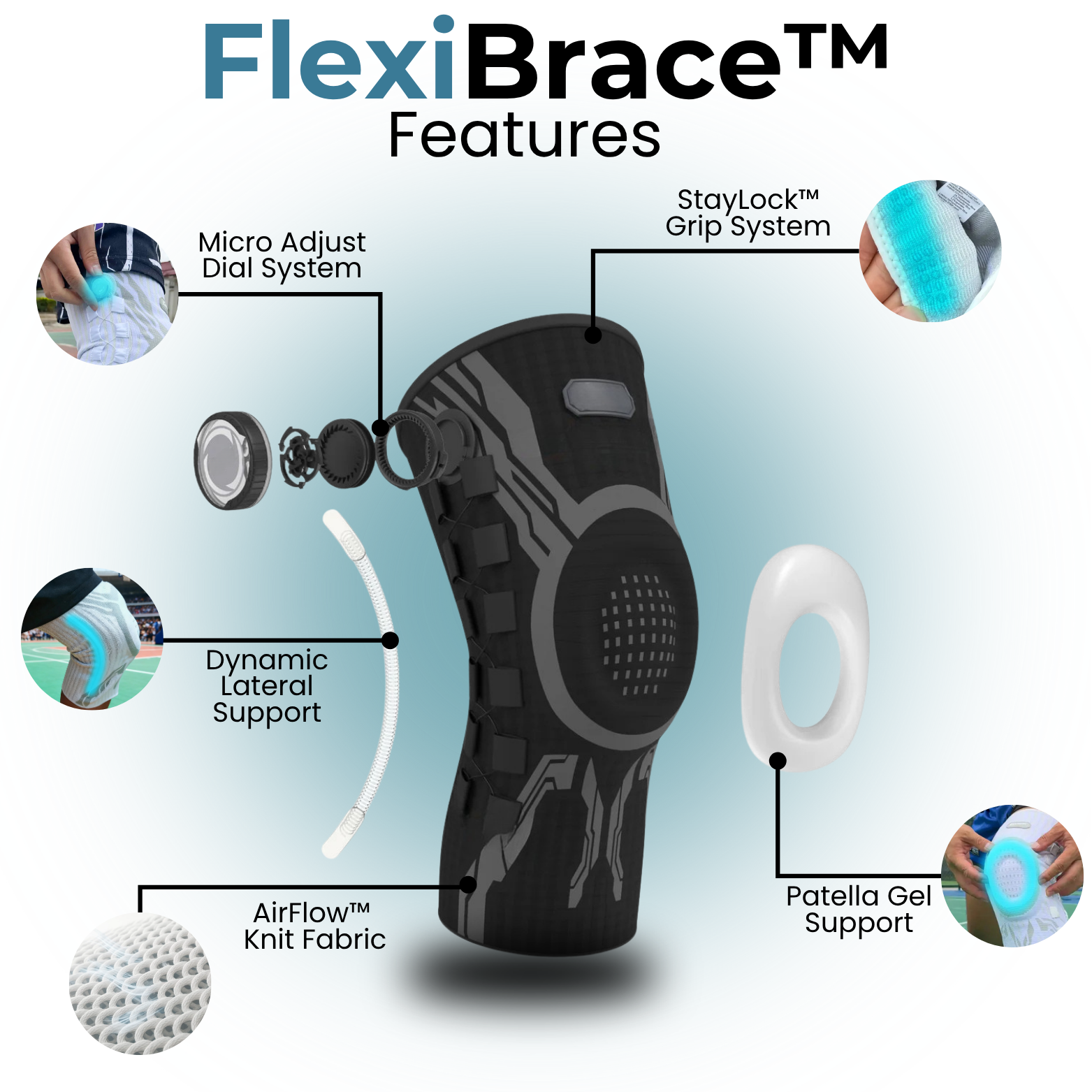 FlexiBrace™ is made from soft, skin-friendly fabrics designed for daily use and long-lasting support.